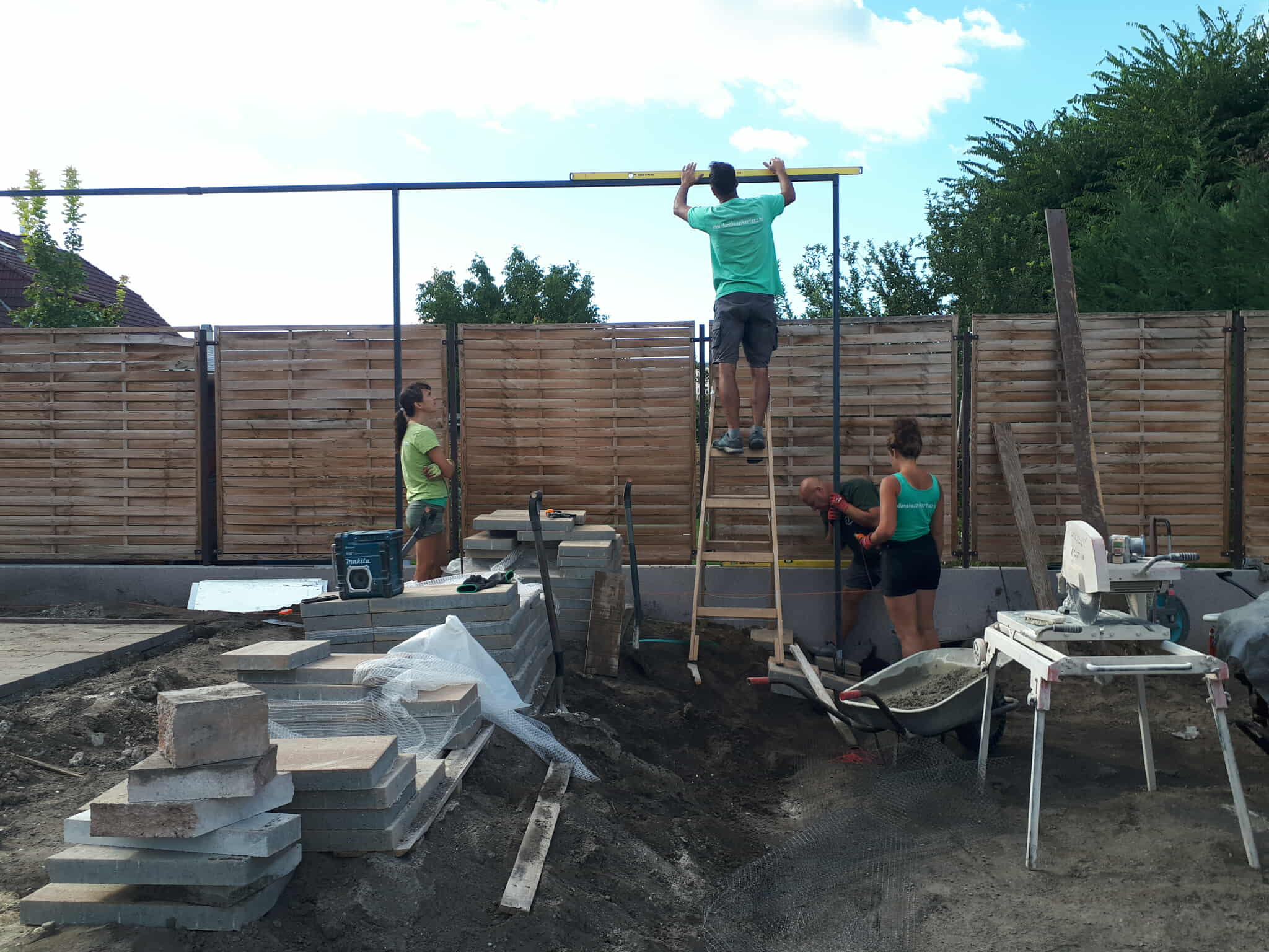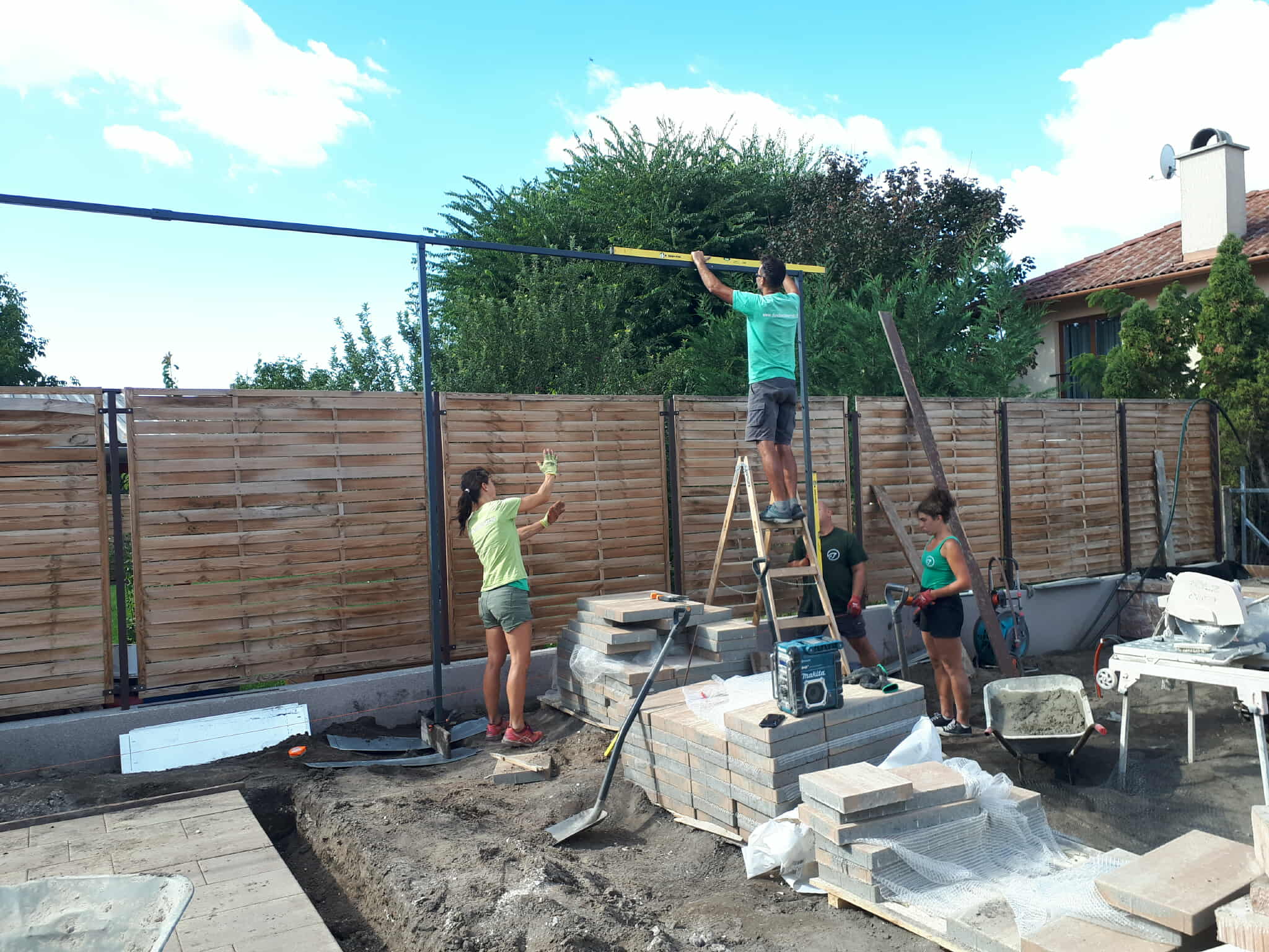 Talán mindezen szempontok együtt vezérelték azt a kerttulajdonost, aki arra kért minket, hogy alakítsunk ki egy stabil kordont leendő gyümölcsfája részére. Kertépítőkként és kicsit ezermesterekként hamar neki is láttunk a feladatnak…